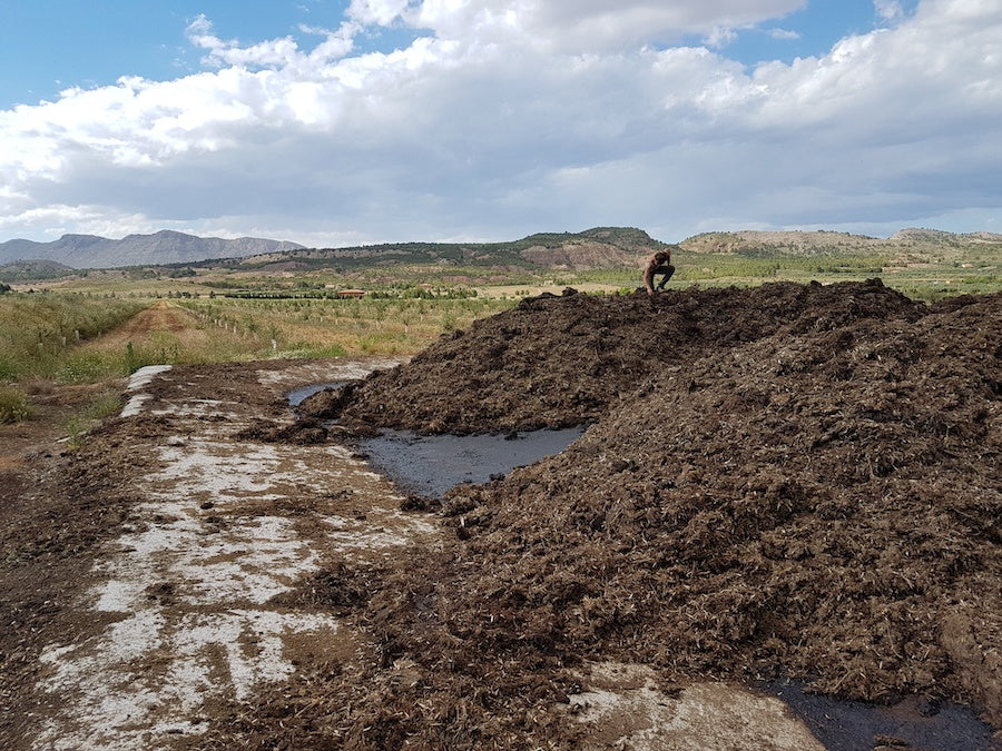 We compost the pomace, leaf remains and livestock manure, the olive pit is used as biofuel to maintain the hot water and temperature of the facilities, the olive leaves that we collect during olive cleaning are removed as organic food for livestock and the pruning remains are crushed on the farm itself to return to the soil as food.